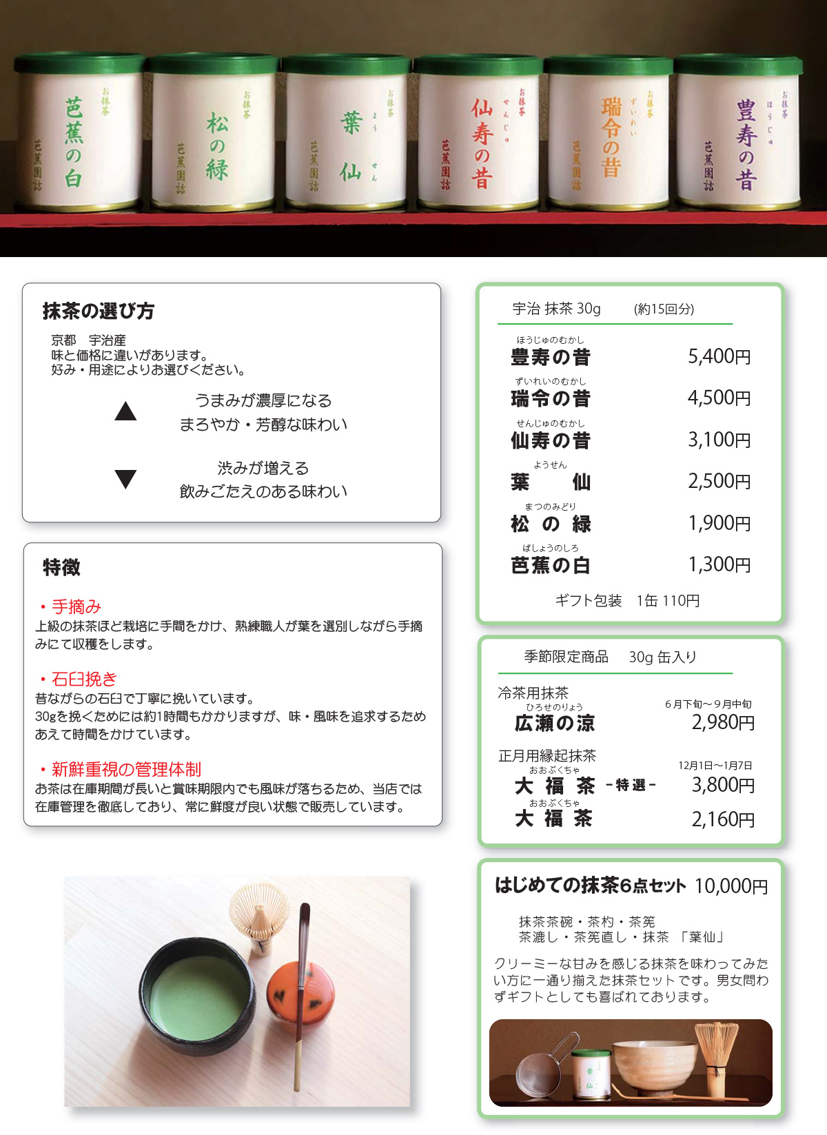抹茶の点て方に不安がありましたら是非お申しつけください。